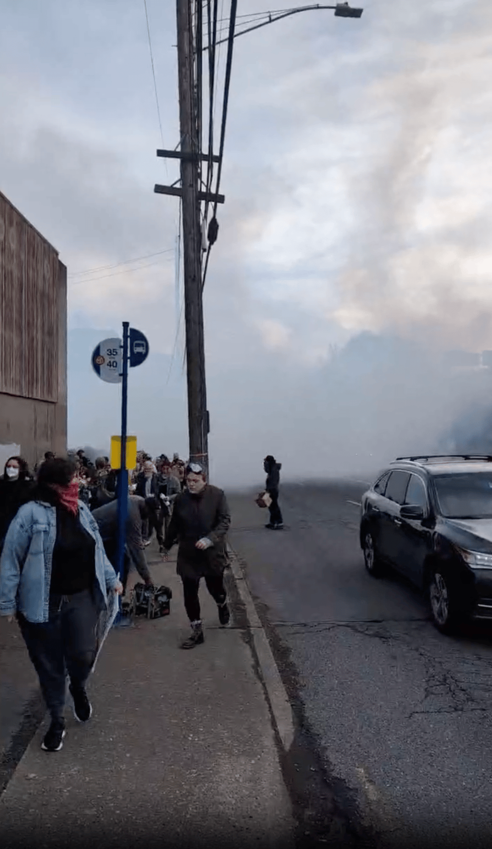 “The first indication of anything was the explosion,” Ty told me. “It was unusual.” Ty was towards the back of the crowd, he explained, and was a bit removed from the deployment of flashbangs and tear gas. He and others around him put on n95 masks to try and protect themselves from the burning chemicals filling the air, seeing as most hadn’t come with the requisite supplies for what this event became.